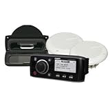 | ✚✚✚ Fusion MS-RA200KTSD AM/FM Stereo with Speakers and iPod Dock This AM/FM/VHF Weather Band Stereo has a huge 50 watts x 4 channels - 200 watts maximum total power. Connect a USB stick or powered hard-drive for hours of music. Also features a AM/FM and VHF receiver. Fusion uses the latest processors to control all features of the stereo. Add amplifiers and subwoofers for mild to wild sound systems in motor yachts, water-sport and fishing boats. Multi-Zone technology offers full balance and individual control of the volume in two locations. For example, the skipper can independently adjust volume on the bridge, while not affecting the other zone of the vessel. Can be installed in more locations on your boat than standard DIN units due to it's compact size - 157mm (wide) x 68mm (high), (6-3/16 inch x 2-11/16 inch). Using the Wired Remote (MS-WR600), allows full operation of this product anywhere on board. Most operations are controlled by a single rotary encoder. Has a fully integrated iPod user interface. To alert the user of an incoming iPhone call, audio is automatically muted (when in iPod source). Compatible with all iPods built since 2006 (except Shuffle). Purchase the Marine Dock for iPod (MS-DKIP) or the Marine Portable Media Device Dock (MS-DKIPUSB) and protect your iPod or iPhone from the harsh marine environment. With the addition of the Marine Portable Media Device Dock (MS-DKIPUSB), enjoy unlimited music and video on compatible TV monitors or chart-plotters.